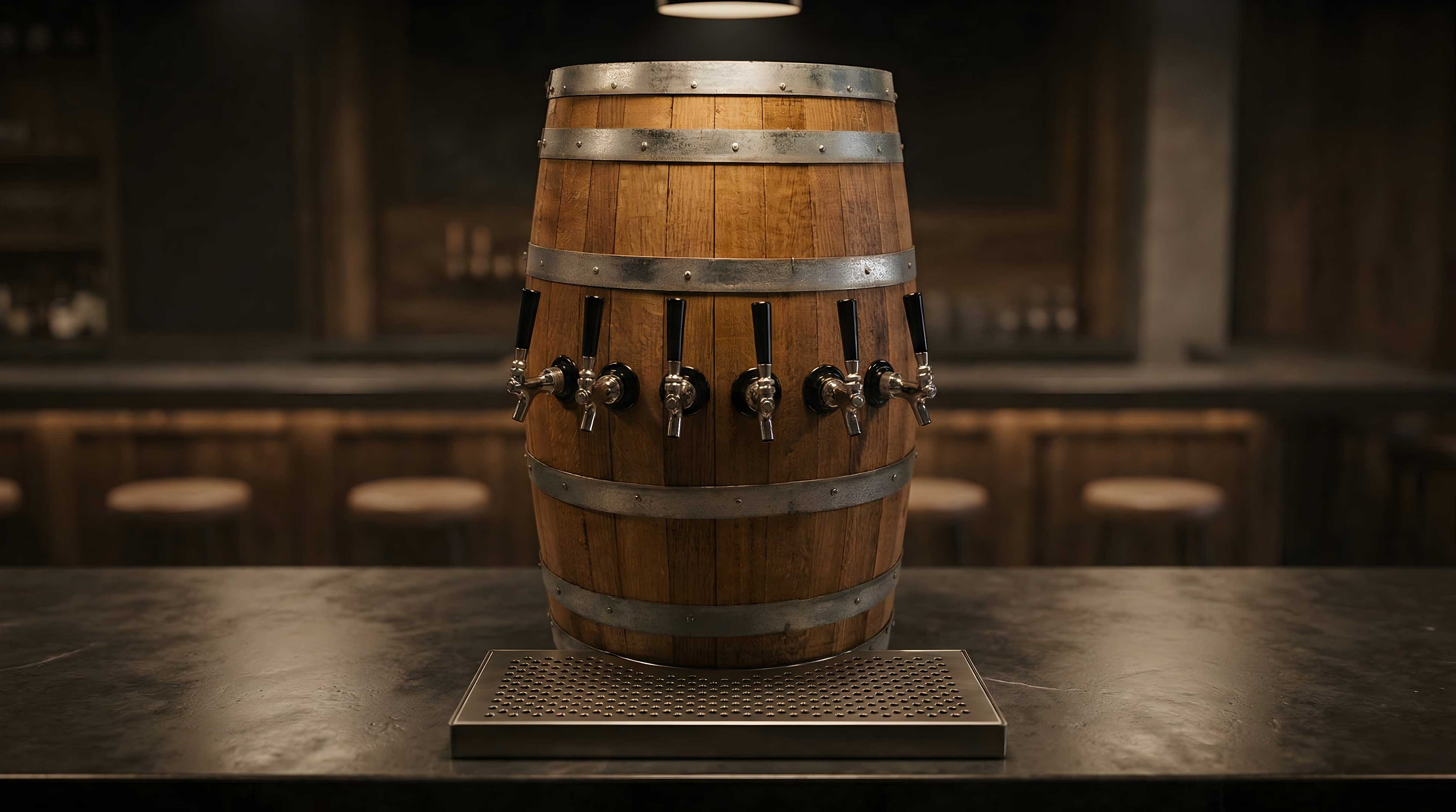 - Oak barrel with natural wood finish